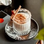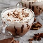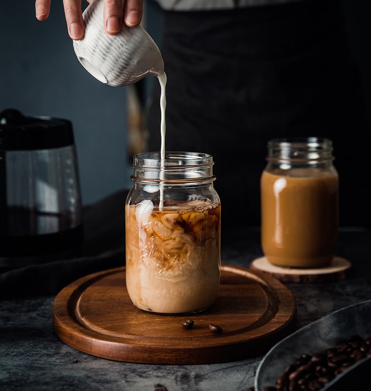 Espresso with steamed milk, vanilla-flavour and caramelised sugar over ice